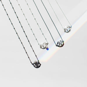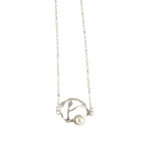 • Our petite pearl cluster necklace offers a minimalist, delicate look to complement any outfit. The piece features a freshwater pearl carefully mounted on a seaweed cluster crafted from brushed sterling silver. The necklace is 16" in length with an o-ring clasp. Every piece is handcut and smoothed with meticulous detail. Handcrafted in Washington, DC.