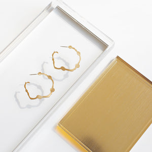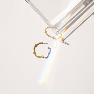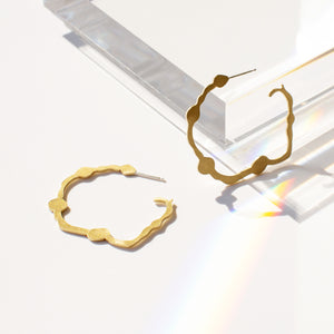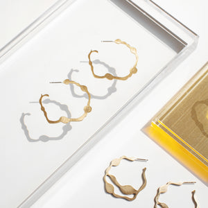 Our Nori Hoops are our modern version of delicate hoops that pack a little punch. The hoops are made edgier and more modern using brass instead of gold. Light enough to wear all day. The Nori Hoops are inspired by our Limited Edition Collection with DC Style Factory.