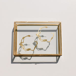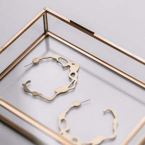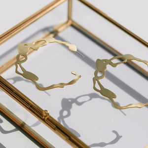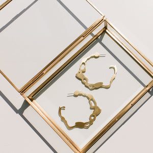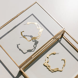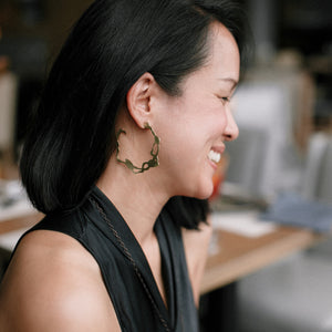 "We knew right away that we wanted to design large hoop earrings. I have been wearing large gold hoops since I was a teenager and they are always my go-to to add flair to an outfit. The seaweed shape in large brass hoop earrings? I knew it would be perfection." Rosana Vollmerhausen, founder of DC Style Factory.