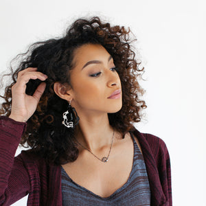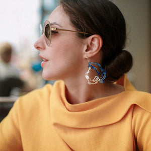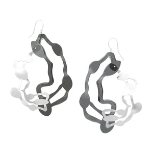 • Statement pieces that cleverly combine acrylic with brushed sterling silver to create pendant earrings that are truly wearable art. Every piece is handcut and smoothed with meticulous detail.