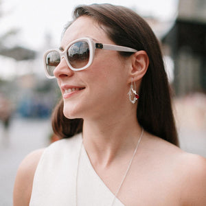 • Our small earrings hang delicately, while still making a bold statement. They are crafted from sterling silver. The pair of earrings feature 2 acrylic bits. Every piece is hand cut and smoothed with meticulous detail. Handcrafted in Washington, DC.