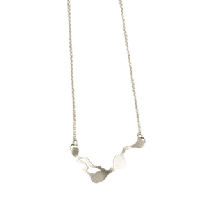 Our petite seaweed necklace offers a minimalist, delicate look to complement any outfit. The piece features a seaweed design crafted from brushed sterling silver. The necklace is 17" in length with an o-ring clasp. Every piece is handcut and smoothed with meticulous detail. Handcrafted in Washington, DC.
