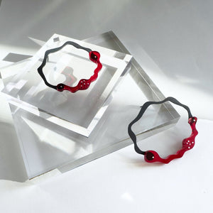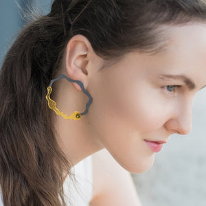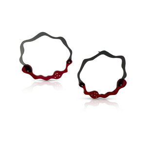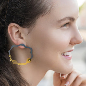 • These round post earrings are every art lover's dream - featuring an organic seaweed element in oxidized sterling silver paired with our signature acrylic in bold colors and perforations for light to shine through, giving the illusion of twinkling stars. Every piece is handcrafted with meticulous detail.