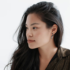 Taking on the form of a seaweed floating in water, our Dulse Earrings sweep your ears in a graceful, organic way. The two tones of slate and brushed sterling silver give these earrings a slightly edgy yet timeless look. These artfully designed earrings are modern in shape and form, and light enough to wear all day.