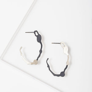 The Dual Toned Oval Komu Hoops are a modern take on the classic hoop earrings. The sweeping organic lines, shape and form make these hoops next-level. The two tones - slate and brushed sterling silver - give these earrings an edgy yet timeless look. These earrings are light enough to wear all day.
