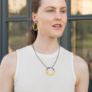 With every piece, Denisa Piatti preserves traditional handcrafting techniques. She is known for creatively combining unexpected materials, like sterling silver with bold acrylic. Each piece is made by hand from her studio in Washington, DC.