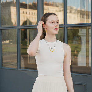 With every piece, Denisa Piatti preserves traditional handcrafting techniques. She is known for creatively combining unexpected materials, like sterling silver with bold acrylic. Each piece is made by hand from her studio in Washington, DC.