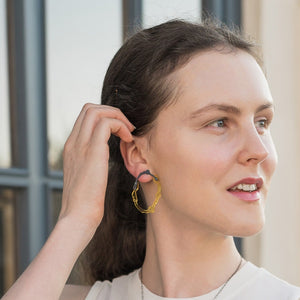 These oval post earrings are every art lover's dream - featuring an organic seaweed element in oxidized sterling silver paired with our signature acrylic in bold colors and sterling silver inlays, giving the illusion of twinkling stars. Every piece is handcrafted with meticulous detail.