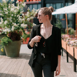 With every piece, Denisa Piatti preserves traditional handcrafting techniques. She is known for creatively combining unexpected materials, like sterling silver with bold acrylic. Each piece is made by hand from her studio in Washington, DC.