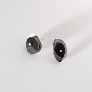 Our signature design transformed into chic petite studs. Handcrafted in bold acrylic and sterling silver, these are statement earrings that won't get in the way. Added bonus: the pair of earrings are not identical, one is oval and the other is round in design. These earrings will certainly make heads turn. You’ll get so much wear out of these petite, mask-friendly earrings.