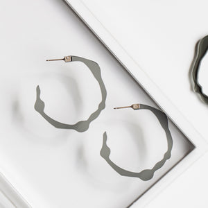 We're turning hoop earrings up a notch. These moody, twilight grey acrylic hoops are sophisticated showstoppers.Inspired by the power of color, deep grey invokes a story that is extraordinary, dramatic, and mysterious. Every piece is handcrafted with meticulous detail. We include a card with the color's meaning.