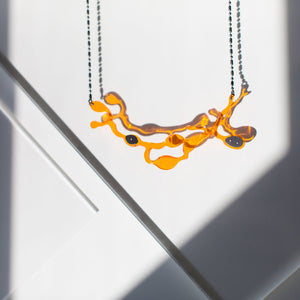 This necklace features an acrylic seaweed to create a piece that is truly wearable art.