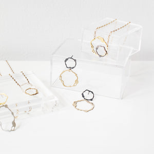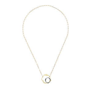 The Komu Necklace is our elevated version of the pendant necklace. This edgy mixed-metal piece is a true play in form and versatility. It is flattering and works for professional or off-duty looks. Pair the with our Dangle Komu Earrings. The necklace is inspired by our Limited Edition Collection with DC Style Factory