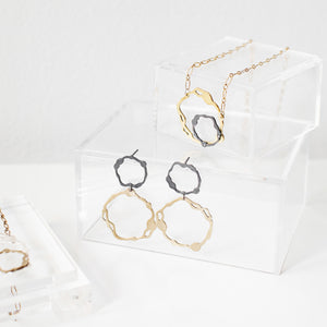 With every piece, Denisa Piatti preserves traditional handcrafting techniques. She is known for creatively combining unexpected materials, like sterling silver with bold acrylic. Each piece is made by hand from her studio in Washington, DC.
